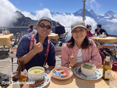 今日のグリンデルワルトの天気は、曇り。 時々雨が降る。 気温は、+16度。 今日は、「シルトホルンへの観光」として、日本からのご家族をご案内する。 弊社のオプショナルツアーである。 https://www.jibswiss.com/optional-2025-02-schilthorn.html ラウターブルンネン駅でミート。ロープウェイと電車でミューレンへ。 メインストリートを約15分歩いて、シルトホルン乗り場へ。 そして大型ロープウェイでビルグ経由で標高2970mのシルトホルンへ。 ここは、まだまだ新しい大型ロープウェイの追加工事中で、いたるところが工事中だが、 それでも、しっかりと観光見学が出来る。 天気はイマイチで、雲が多く、なかなか山も見えない状況。 007の映画(「女王陛下の007」のハイライトシーン)を見て、テラスで写真撮影。 真っ白な背景をバックにパチリ。 「あとで編集しておいてください」(笑) 回転レストラン「ピッツ・グロリア」で昼食。 その後、大型ロープウェイでミューレン経由でシュテッヘルベルグに降りて来る。 今日は、そんなに観光客はいなかったが、帰りのロープウェイでは、ティモールから来ている団体(約30名位)が、大騒ぎ。 嬉しいのは分かるが、大声とバカ騒ぎで。参った参った。 帰路に、トゥリュンメルバッハの滝を見学してラウターブルンネンへと戻って来る。 天気は段々と回復してきて、遅い時間には青空は広がっていた。 |