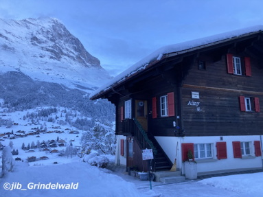 | 今日のグリンデルワルトの天気は、晴れ。 気温は、マイナス1度。 寒い朝である。 昨夜降った雪の雪かき作業を朝から行なう。 午後からは、チューリッヒ空港へ日本から到着のお客様を迎えに行く。 しかし、日本からの飛行機は1時間30分遅れ。 お出迎えしてグリンデルワルトに到着したのは、午後11時だった。 |