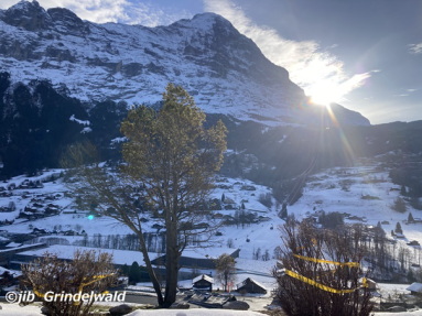 | 今日のグリンデルワルトの天気も、晴れ。 気温は、+7度。 天気が晴れていても、太陽がグリンデルワルト村内に輝くのは、数時間のみ。 今では、午前10時ごろから1時間。午後2時から1時間と、午後4時から1時間のみ。 あとは、太陽はアイガーの裏側を通過している。 |