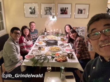 | 今日のグリンデルワルトの天気は、雲海の下。 気温は、+4度。 冬場は、雲海が出来ていて標高の低い地域(谷底)などは、常に雲(ガス)の下になる日が多い。 チューリッヒやルッツェルン、ベルンなどは毎日雲の下で、気温は低く、うっとうしい天気となる。 しかし、標高1,000m辺りからはその雲の上になる事が多いので、グリンデルワルトなどでは太陽が輝いている。 その太陽を求めて下界に住んでいる人々がやって来る。 スキーもすれば、冬のハイキングや観光としてやって来る。 ただ、今日はそのグリンデルワルトも、雲の下。 標高1、800m辺りまで上がれば雲の上に出る。 曇り空の日、飛行機が飛び上がって暫くすると雲の上に出て、太陽が輝いているが、丁度あの状態である。 夜には、安東家恒例の「クリスマス・イブの夕食会」。 家族全員が集まってプレゼント交換をしたり、夕食を共にする。 メニューは、「しゃぶしゃぶ」と決まっている。(笑) |