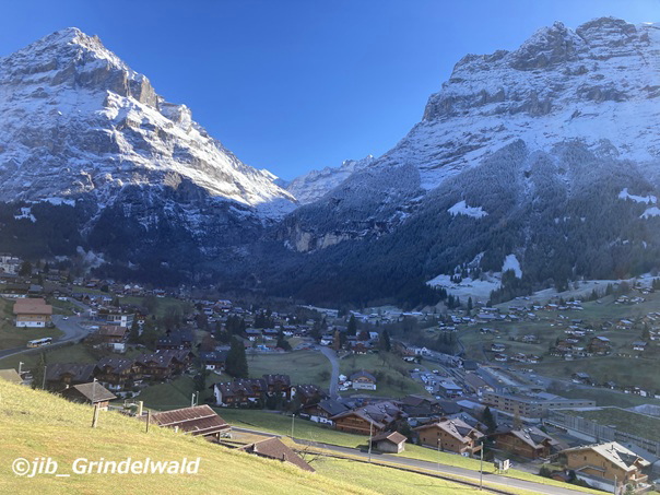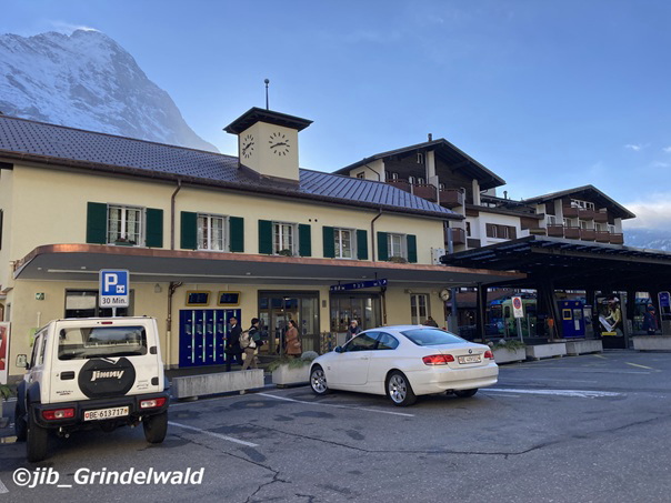 | 写真B グリンデルワルト鉄道駅と アイガー。 (11月17日 撮影) |