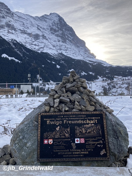 | 写真C 姉妹都市の記念碑 と、 アイガー北壁。 (12月11日 撮影) |