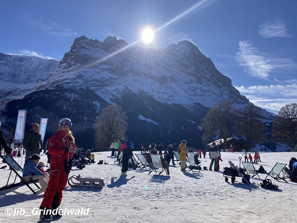 | 写真B アイガー北壁と太陽。 初級者用ゲレンデの ボドミ。 (02月02日 撮影) |