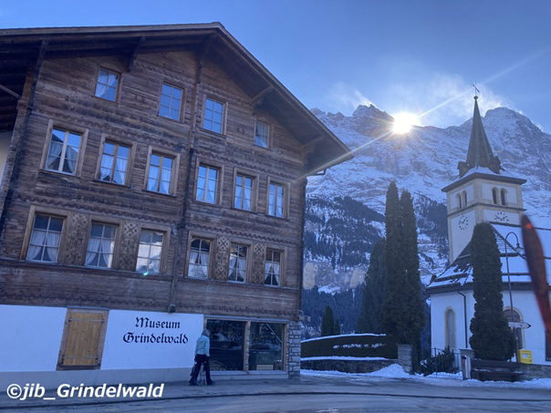 | 写真F アイガー北壁と、教会と グリンデルワルト博物館。 (02月02日 撮影) |