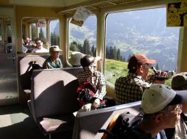 | 写真G グリンデルワルトへと戻る登山電車 (WAB)の車内にて。 |