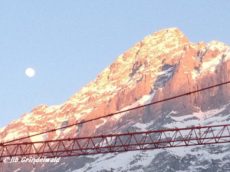 | グリンデルワルトの天気は、晴れ。 午前07時15分の気温はマイナス2℃。 事務所での仕事。 夕方の夕焼け。 アイガーも、ヴェッターホルンも赤くなって綺麗だった。 |