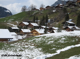 | グリンデルワルトの天気は、曇り。 午前07時15分の気温は+4℃。 朝の時間の気温は低いものの、日中の気温はグググと上がり、半袖でも暑いくらい。 家の周辺も雪も溶け、春まじか!・・・というような様子である。 |
