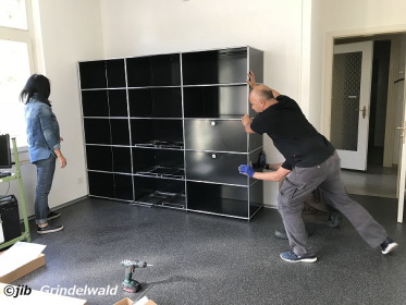 | 今日のグリンデルワルトの天気は晴れ 新しい事務所への移動。 大型キャビネット、椅子、その他モロモロ。 小さな事務所とはいえ、ものが多い(笑)。 1日かかってもまだまだ終わらない。 |