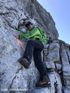 | 今日のグリンデルワルトの天気は、晴れ。 今日はお休みです。 天気が良いので、ハイキングに。 行き先は、「オストエッグ・ヒュッテ」(標高2320m)。 登山電車にてアルピグレン(標高1616m)に向かい、ここで下車。 アイガートレイルの登りコースをアイガーに向かって歩く。 途中からコースが分かれて、グリンデルワルト方向へ。 更に、途中から標識のない登山道をアイガー東山稜に向かって登って行く。 結構険しい道であり、途中に固定ザイルやチェーンなどが備え付けられている。 そして、アルピグレンを出発して約2時間でアイガーの壁に到着。 ここからは、ザイルやハーネス、ヘルメットなどの登山道具が必要となるほどのそそり立った壁がド〜〜ンと。 今回は下見のため、それらの道具は持参せず。 よって、今日はここまで。 ちなみに、オストエッグ・ヒュッテは、グリンデルワルト登山ガイド組合設立100周年記念に1998年に 登山ガイド達によって建てられた山小屋で、ここに宿泊後、翌朝にはアイガー東山稜を登って「ミッテルレギ・ ヒュッテ」(槙さんの寄贈した屋m小屋)に宿泊。そしてアイガー山頂に登るルートでもある。 夏のシーズン、午前5時ごろ、このあたりを見ていると登山家のヘッドランプがチラチラと見えることがある。 「今、登っているんだな〜」と見ている朝が多い。 (ミッテルレギ・ヒュッテからの登山家のヘッドランプも見えるのだが) 持参した昼食後。 今登ってきた道を下山。 (これも、結構スリリングであるが) グリンデルワルト方向に下りるハイキングコースを通って、グリンデルワルトのグレッチャーシュルフト(峡谷)へ。 アイガーの壁から約3時間のコースである。 ここのレストランで休憩、並びに、ビールタイム!!(笑) そして村内バスにて戻ってきた。 ちなみに、今日のハイキング距離は、15.5km。歩数は22,483歩。そして上った階段数は、124階だそうだ。(笑) |