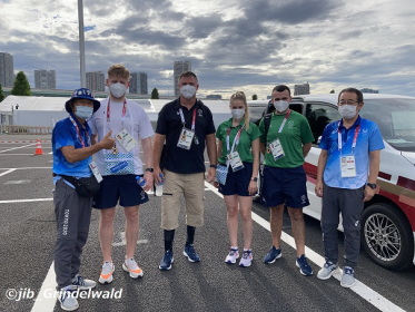 | 自転車で選手村まで、1時間04分。 ボランティアの待合室で待っていると、呼び出しが。 ウクライナの選手とコーチなど5名をオリンピック・スタジアムへ運ぶ仕事が。 車に設置のナビゲーターが、ちゃんと指示を出さず、あっちこっちへと変化する。 それにイライラしたウクライナのコーチが、自分のスマホのグーグルのナビゲーターを取り出して、 「この通りに走ってくれ!」と言う。 その指示通りに走るが、この場合、通行止めとか、オリンピック関係の入口とかが示されていないので、これまたあっちこっちに。 「時間がない!」と時計を見ながらイライラする関係者。 結局、8時43分に到着。 時間に間に合ったのかどうか・・・・知らない。 待機場で車を止めて、駐車場整理をする案内役の女性と話しをする。 いつもは羽田空港で働く女性たちで、駆り出されているという。 朝の5時から夕方までの12時間労働で、休憩が1時間のみ。 しかも、休む控室(小屋)もなく、クーラーの効いた部屋もなく、ずっと屋外の仕事だそうだ。 これも大変だぁ〜。 待ち時間、車の中に居ても仕方がないので、「ダメモト」でスタジアムへ。 「入れますか?」と入口で聞いたら 「入れますよ」との事。 セキュリティー・チェックや、身体検査、持ち物検査などの作業はあるが、そのまま普通に中に入って、スタジアムへも入れた。 (やったー!) 初めて入る、オリンピック・スタジアム。 無観客とは言え、選手たち、関係者、役員、マスメディアの人々、そして多くのボランティアと。中は、色んな人たちでごった返していた。 陸上競技が開かれており、女子400mの予選と砲丸投げが行なわれていた。 一応、場内を一周する。 ロンドン・オリンピックの会場もデカかったが、ここもでかい。 長く見ていたかったが、送って来た選手が戻る時間もあるので、そこそこに引き上げた。 そして、11時すぎ、ウクライナの選手たちが戻ってきたが、女子選手が足を怪我をした様子。 左足が包帯に巻かれていた。 午後12時ごろ。 一旦終了し、そのまま「待ち時間」に。 昼食は抜き。 色んなボランティアがいるが、今日は韓国人の女性2名がいた。 そして、中国人の男女4名、香港人の男性と、話す。 勿論、みんな日本に住んでいるので、日本語が上手だ。 午後雨が降ったが、やんだのを見計らって自転車で帰る、 帰りは、丁度1時間だった。 |