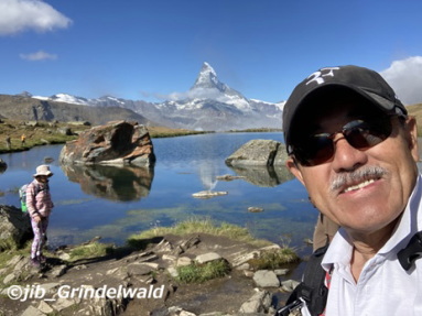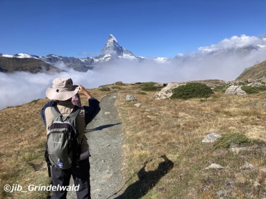 | 今日のツェルマットの天気は、ガス。 朝からツェルマット滞在中の日本人ご夫妻のハイキングガイドを行なう。 標高1,600mのツェルマットは、まだガスの下。 しかし、雲が薄いので、山の方は晴れていると確信している。 地下ケーブル・カーでスネガ展望台に上がり、更にゴンドラ・バーンでブラウヘルトに着くと、そこは雲海の上。 真っ青な空と眩しい太陽が輝いている。 登って来る観光客も、ここでみな歓声を上げる。 この、ブラウヘルト(標高2,571m)からのハイキング。 途中、ステリゼー、グリンジゼーを経て、ライゼーへ。 そして、スネガ(標高2、288m)のレストランで昼食。 まだ雲がかかっていたマッターホルンも、昼食中に雲が晴れて、真っ青な空をバックに聳え立つ姿が。 レストランのテラスの最前列で陣取っていた我々の場所が、写真ポイントの場所となる。 ガイド終了後、私はグリンデルワルトへと戻って来る。 |