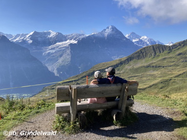| 今日のグリンデルワルトの天気も、晴れ。 気温は、+16度。 朝から、知人夫妻とハイキングに。 行き先は、フィルスト(標高2,168m)へ。 そして、バッハアルプゼーを経由して、標高2,681mのファウルホルンへ。 ここで昼食。 ソーセージ入りスープが美味い! 冷えたビールが美味い!(笑) その後、ブスアルプ(標高1,792m)へと降りて来る。 村内バスでグリンデルワルトへと戻り、ここで、またビール。 女性陣はアイスクリームを食べて大満足(笑) |
