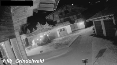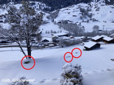 | 今日のグリンデルワルトの天気も、晴れ。 気温は、マイナス1度。 寒む〜〜〜〜い朝である。 気温が下がると、人工降雪機が稼働する。 グリンデルワルト村のスキー場(スキーで降りて来るゲレンデ=コース)には、シーズン前から降雪機によって、人工的な雪を作っている。 勿論、気温がマイナスにならないと雪が作れない。 その人工降雪機が昨夜から稼働した。 |
