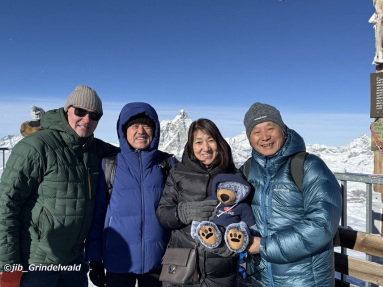 | 今日のツェルマットの天気は、晴れ。 ツェルマット観光局長の案内で、グレッシャー・パラダイス(昔のクライン・マッターホルン)を見学する。 一昨年開通した「マッターホルン・グレッシャーライド」は、トロッケナー・シュテックからグレッシャー・パラダイスの山頂まで、26人乗りの 大型ゴンドラとして短時間で運んでくれる。 更に、今年開通した「マッターホルン・グレッシャーライド2」は、グレッシャー・パラダイスの山頂駅からイタリアの「テスタ・グリジア」展望台 (プラトーローザ / ドイツ語名)までの大型ゴンドラバーンであり、冬しか行けなかった「テスタ・グリジア」展望台(プラトーローザ / ドイツ語名) まで行けるようになった。これで、夏の観光でも、スイスのツェルマットからイタリアのチュエルヴィニアまで簡単に往復する事が出来る。 「テスタ・グリジア」展望台のレストランで昼食を取り、再びグレッシャー・パラダイスに戻ってきて、そこからはヘリコプターによる空からの 遊覧を楽しむ。 約30分間のフライトで、ブライトホルンからスタートして、カストール、リスカム、モンテ・ローザ、そしてマッターホルンの北壁などを上空から 見る事が出来た。 夕方から、モンベル社のツェルマット支店の設立10周年記念式典にお呼ばれして参加する。 ここでも、ツェルマットの住民の方々と懐かしき再会をする。 ツェルマット村長、学校の元校長先生、教育委員会会長、妙高クラブの会長、そしてWEGAというお店を経営している日本人の 西永キミさんなど、40年前からの知人である。 |
