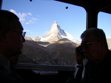 | 登山電車から見た「マッターホルン」(標高4478m) | ゴルナーグラート展望台から見た「マッターホルン」 |