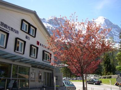 | お花畑と「アイガー北壁」 | 日本語観光案内所から見た駅方向 |