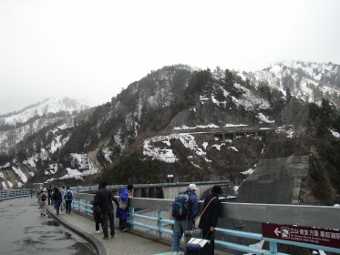 | 黒部ダムにて(黒部湖の標高は1448m。ダムの高さは186m、堤長492mの日本最大のアーチ式越流型ダム) | |