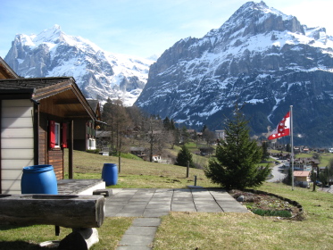 | アイガー北壁とアスペン方向(白い線が残ったスキーコース) | ヴェッターホルン(左)とメッテンベルグ(右) |