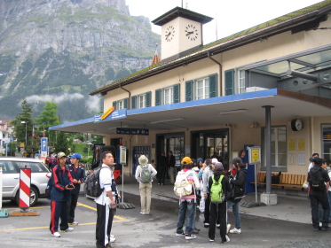 | 朝のグリンデルワルト駅前 | 途中の乗り換え駅「クライネ・シャイデック」にて |