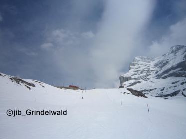 | アイガーグレッチャーにあるスキー場の標識 | 登る登山電車と、アイガー西壁 |