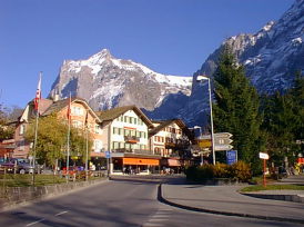 写真L スポーツセンター前から 見たメインストリートと 「ヴェッターホルン」です。 (11月03日撮影) |