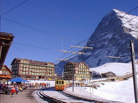 写真B クライネ・シャイデック駅 と「アイガー北壁」です。 (02月01日撮影) |