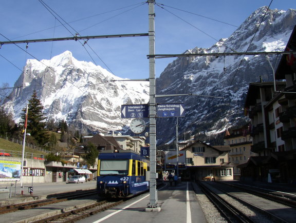 写真F グリンデルワルト駅と登山電車 「ヴェッターホルン」 (標高3701m) (03月04日撮影) |