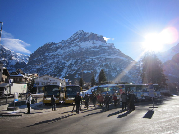 | 写真E グリンデルワルト鉄道駅と (インターラーケン方向の登山電車) (02月02日 撮影) |