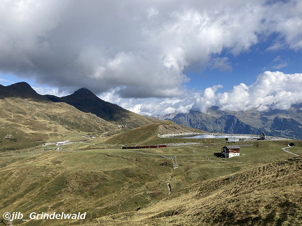 | 写真A 登山電車とヴェッターホルン とグリンデルワルト村。 (09月04日 撮影) |