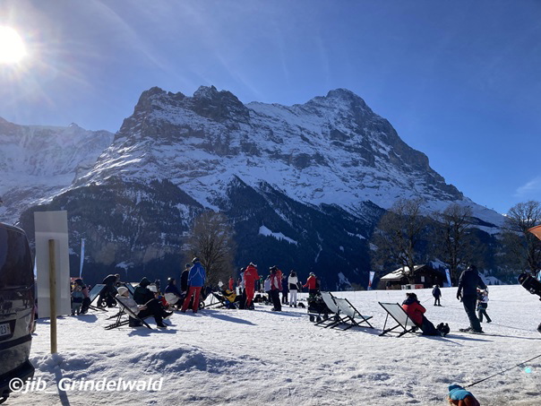 | 写真F ボドミのスキー場は、初心者用の スキーゲレンデ。と、 アイガー(標高3,970m) (02月03日 撮影) |