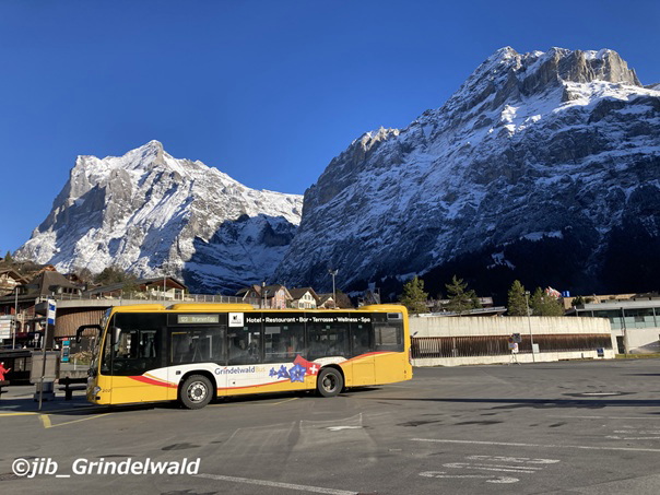 | 写真F ヴェッターホルン(左)と メッテンベルグ(右)と 村内バス。 (11月18日 撮影) |