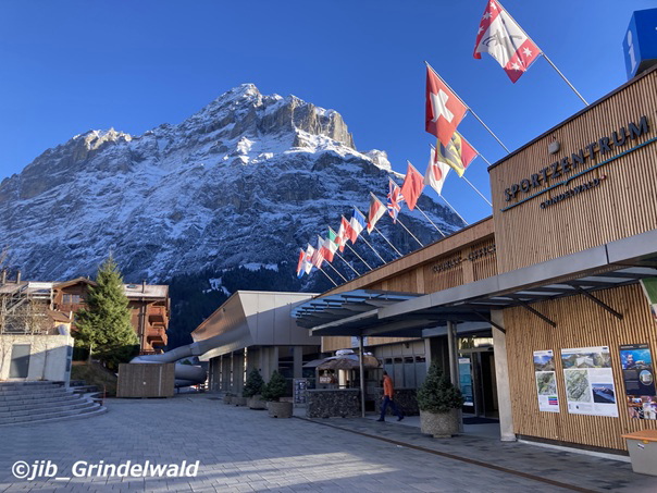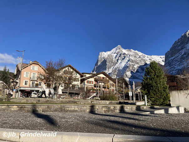 | 写真B グリンデルワルト鉄道駅と アイガー。 (11月17日 撮影) |