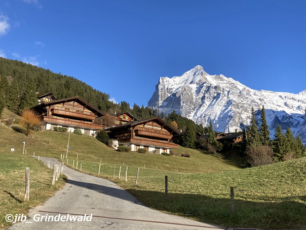 | 写真G 建ち並ぶシャレーと ヴェッターホルン。 (11月18日 撮影) |