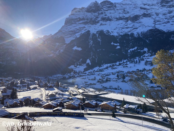 | 写真@ アイガー東側に太陽が。 登山電車。 (02月02日 撮影) |